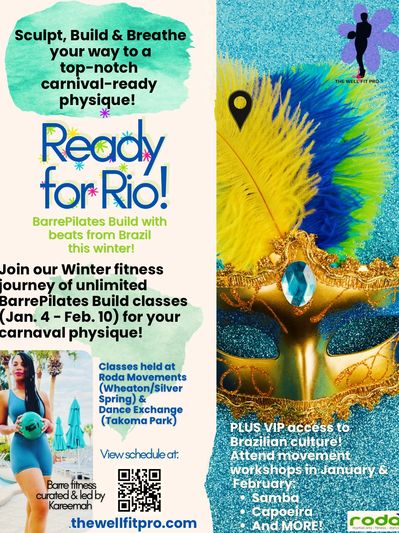 Sculpt.Build.Breathe your way to a carnival dancer physique! Join us for "Ready for Rio" , a 6 week program of our BarrePilates Build program that will transform you with barre, beats and Brazil!